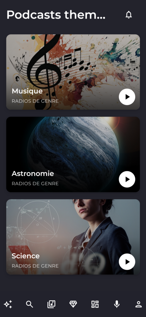 Les radios apparaissent désormais directement dans l’application, aux côtés des autres contenus. Elles sont visibles, claires, faciles à reconnaître.